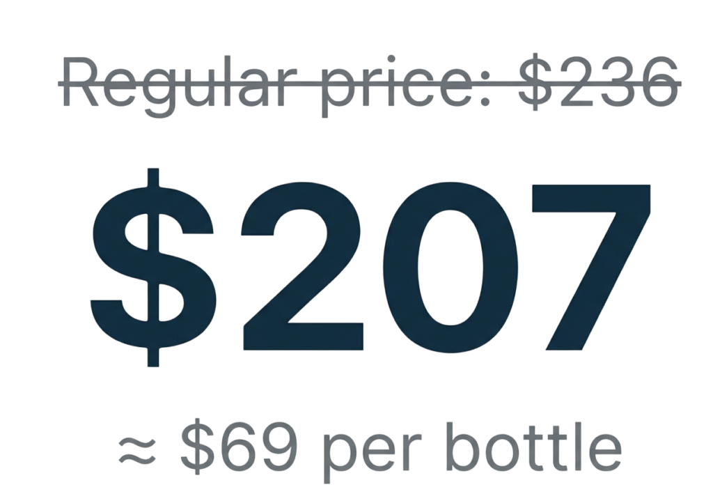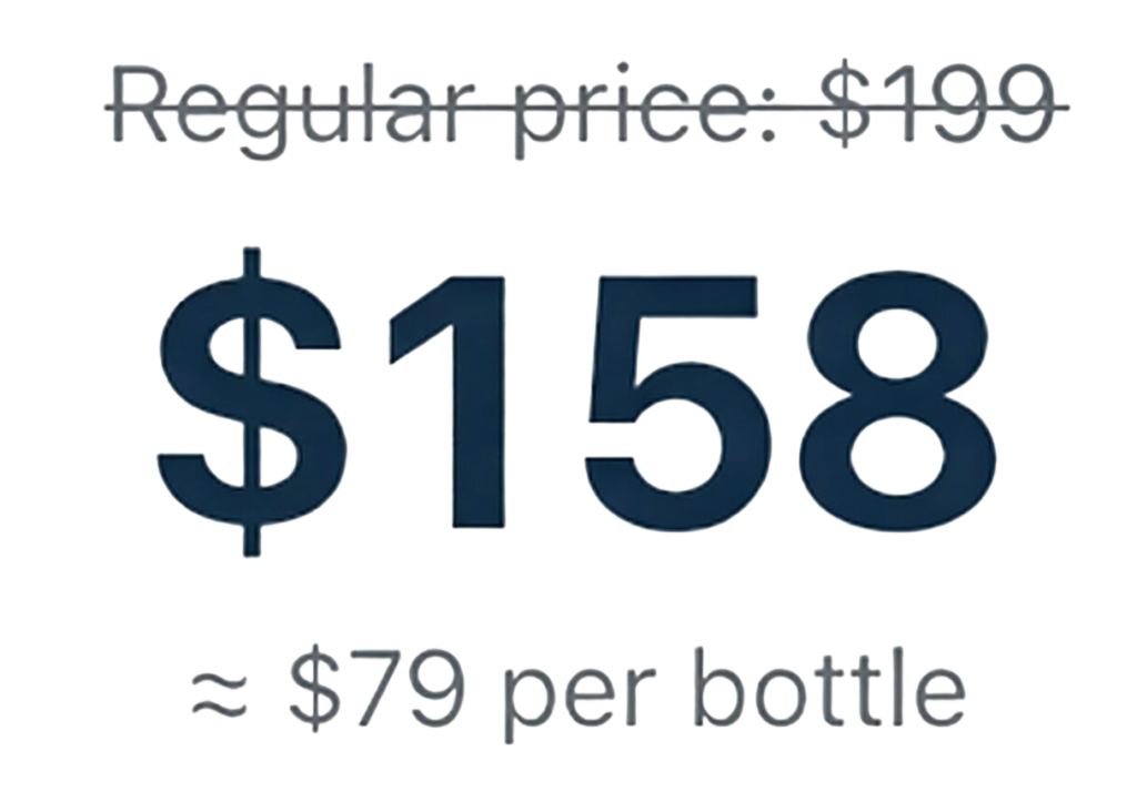 The initial value on the official website is $598 for a package of 6 bottles of Bio Nutraceuticals (just $49 per bottle with the current discount — now $294 for the complete 180-day protocol).